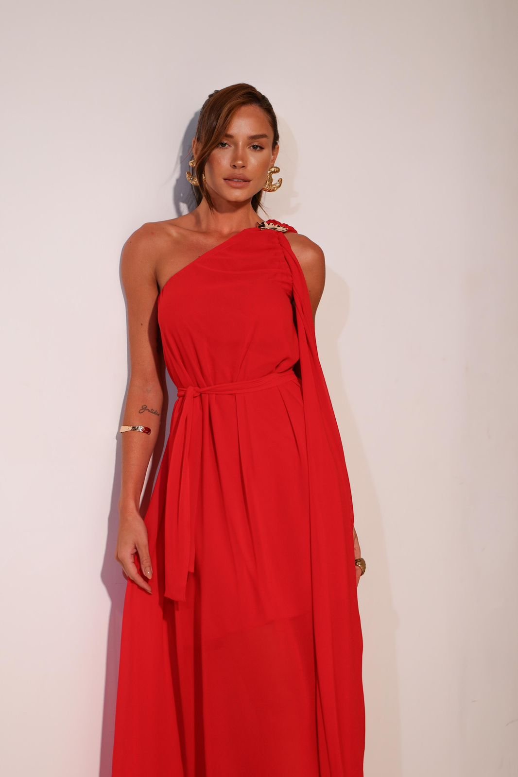 Imponente e sofisticado, o Vestido Rebeca Scarlet é a escolha perfeita para ocasiões especiais que pedem presença e elegância. Confeccionado em tecido leve e fluido, possui design de um ombro só que valoriza o colo de forma delicada e moderna. O detalhe da faixa alongada traz movimento e um toque dramático á peça, enquanto a cintura marcada proporciona um caimento impecável e feminino, Um vestido que traduz poder, elegância e atemporalidade em cada detalhe.
